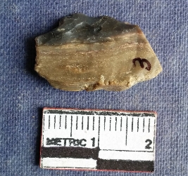 | Description / विवरण | This is a flat chert stone flake, cortex on one side end, ridges with ripples. |
