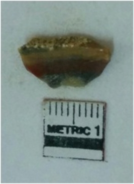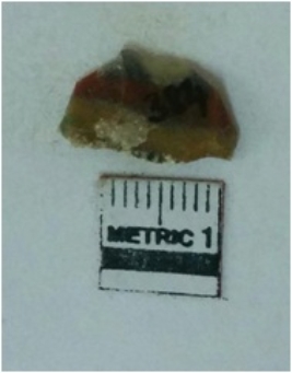 | Description / विवरण | Jasper is a cryptocrystalline piece with cut edges as a result of flaking. |