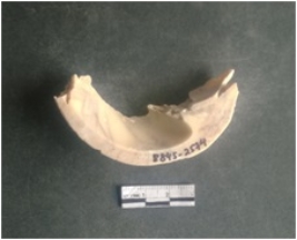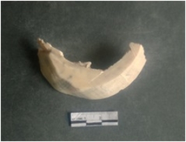 | Description / विवरण | This is a shell circlet fragment with two broken ends. Unfinished and unpolished with cut edges. Possibly either it is a raw material or waste product in the manufacturing unit. |