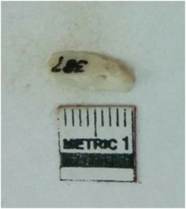 | Description / विवरण | The quartz piece has whitish color with flake scars on the surface. |