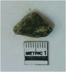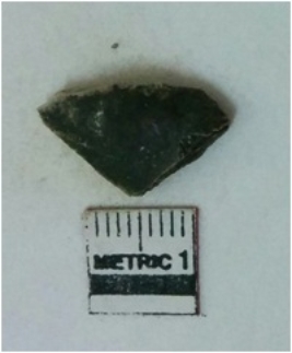 | Description / विवरण | Jasper is a cryptocrystalline piece with cut edges as a result of flaking. |