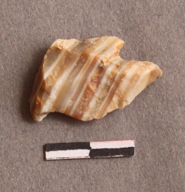 | Description / विवरण | It is a banded agate fragment, with irregular edges and angular point. |