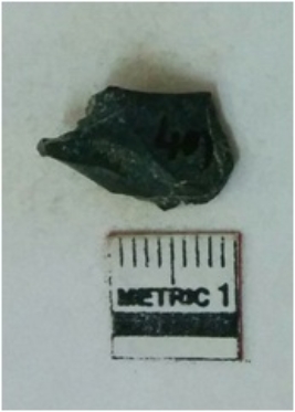 | Description / विवरण | Jasper is a cryptocrystalline piece with cut edges as a result of flaking. |