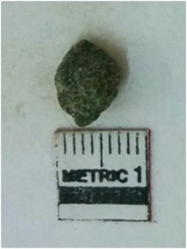 | Description / विवरण | Jasper is a cryptocrystalline piece with cut edges as a result of flaking. |