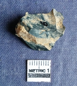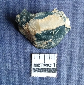 | Description / विवरण | This is a jasper flake with rough cut edges and flaked ridges, bulb of percussion on one side, there is a silicious band in between. |