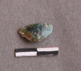 | Description / विवरण | It is a jasper fragment. Triangular in shape. Flake scars on the surface. Bulb of percussion on the ventral side. |
