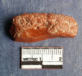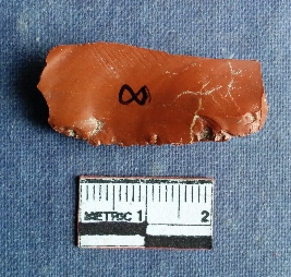 | Description / विवरण | This is an elongated piece of chert stone, brownish in color, one side is smoother with presence of a bulb of percussion on the other side there is a rough uneven surface. |