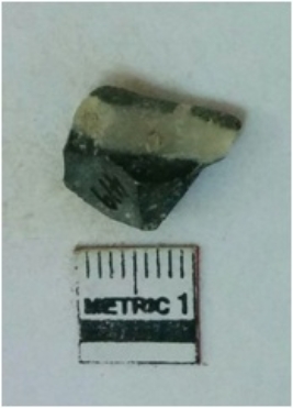 | Description / विवरण | Jasper is a cryptocrystalline piece with cut edges as a result of flaking. |