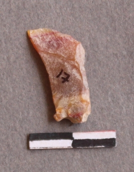 | Description / विवरण | It is a Jasper fragment. Thin and elongated in shape. Flake scars on the surface. |