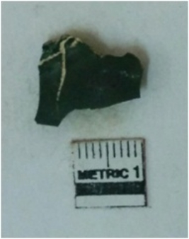 | Description / विवरण | Jasper is a cryptocrystalline piece with cut edges as a result of flaking. |