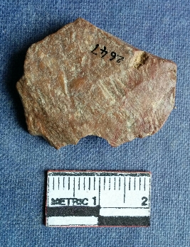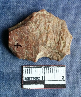| Description / विवरण | This is a flat shaped chert stone flake with ridges on the side and surface. There are a few striation marks on one of the surface. |
