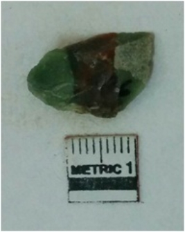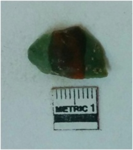 | Description / विवरण | Jasper is a cryptocrystalline piece with cut edges as a result of flaking. |