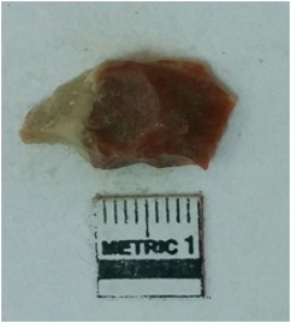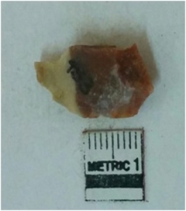 | Description / विवरण | Jasper is a cryptocrystalline piece with cut edges as a result of flaking. |