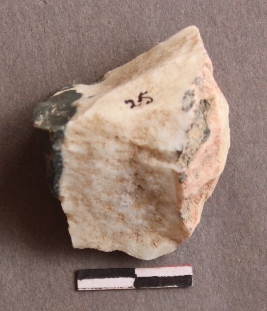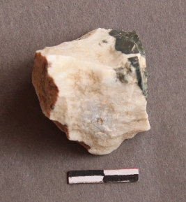 | Description / विवरण | This is a fragment of Jasper.with calcium impurities seen in the form of a white lined band in the middle. |