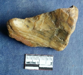 | Description / विवरण | This is a primary chert stone flake with cortex covered mostly, flakes had been remvoed at various places. |