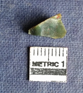 | Description / विवरण | This is a small flake of jasper nodule, cortex covered on one side, flaked ridges on the other sides. Triangular in shape with sharp edges. |