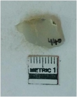 | Description / विवरण | The quartz piece has whitish color with flake scars on the surface. |