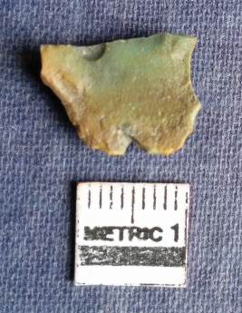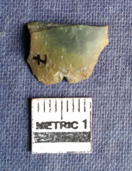 | Description / विवरण | This is a chert stone flake, one side is smooth with a bulb of percussion and cut ridges. Retouched edges, this is a concave sharp thin flat flake. |