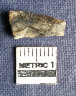 | Description / विवरण | This is a conical shape jasper flake with one side bulbous and smooth surface, flaked ridges on the other side, forming a semi circular cross section on the broader end. |