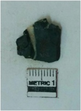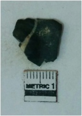 | Description / विवरण | Jasper is a cryptocrystalline piece with cut edges as a result of flaking. |