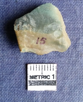 | Description / विवरण | This is a fragment of chert stone with flaked ridges and sharp edges. A small fraction of cortex seen on one side, bulb of percussion seen with striking platform. |