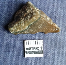 | Description / विवरण | This is a chert stone fragment, it is roughly in triangular shape and with denticulated marks on the side, ripples are seen on the surface. |