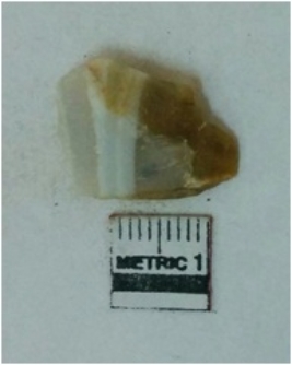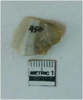 | Description / विवरण | The agate piece has clear flake scars and ripple marks on the surface of the piece. |