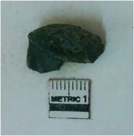 | Description / विवरण | Jasper is a cryptocrystalline piece with cut edges as a result of flaking. |
