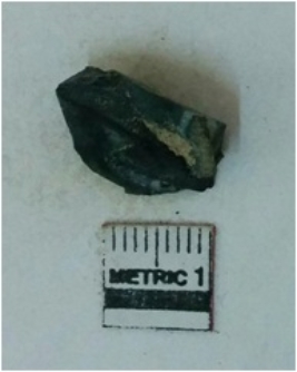 | Description / विवरण | Jasper is a cryptocrystalline piece with cut edges as a result of flaking. |