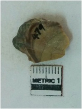 | Description / विवरण | The chert piece has ripples on dorsal surface as a result of flake removal. The piece has sharp edges as a result of flaking. |
