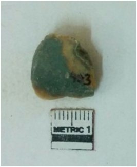 | Description / विवरण | Jasper is a cryptocrystalline piece with cut edges as a result of flaking. |