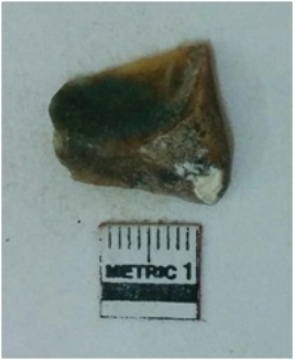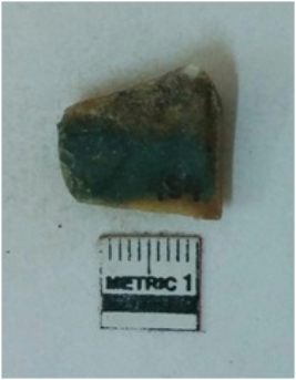 | Description / विवरण | Jasper is a cryptocrystalline piece with cut edges as a result of flaking. |