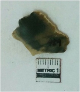 | Description / विवरण | Jasper is a cryptocrystalline piece with cut edges as a result of flaking. |