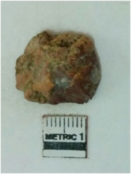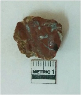 | Description / विवरण | Jasper is a cryptocrystalline piece with cut edges as a result of flaking. |