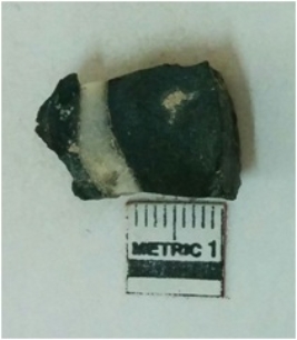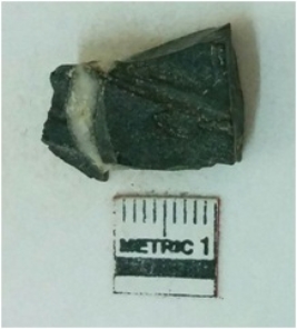 | Description / विवरण | Jasper is a cryptocrystalline piece with cut edges as a result of flaking. |