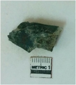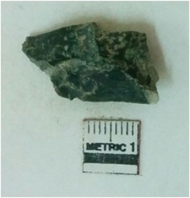 | Description / विवरण | Jasper is a cryptocrystalline piece with cut edges as a result of flaking. |
