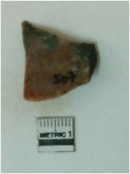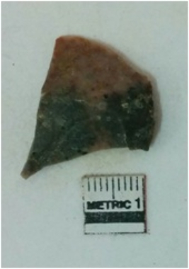 | Description / विवरण | Jasper is a cryptocrystalline piece with cut edges as a result of flaking. |
