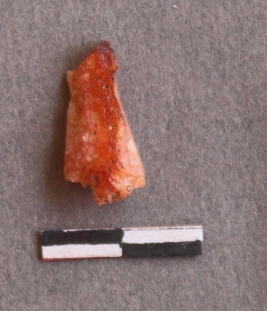 | Description / विवरण | It is carnelian, with presence of cortex at one side, flakes had been removed. |