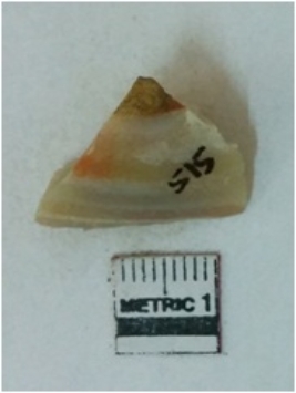 | Description / विवरण | The agate piece has clear flake scars and ripple marks on the surface of the piece. |