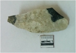| Description / विवरण | The quartz piece has whitish color with flake scars on the surface. |