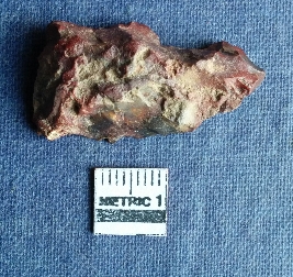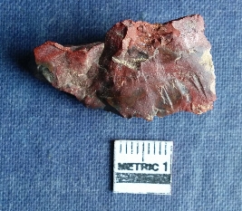 | Description / विवरण | This is a jasper stone flake, uneven surface with impurities, flakes had been removed, reddish maroon in color. |