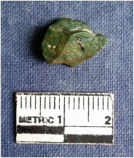 | Description / विवरण | The chert flake has a pointed end and various surfacial scars. |