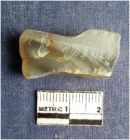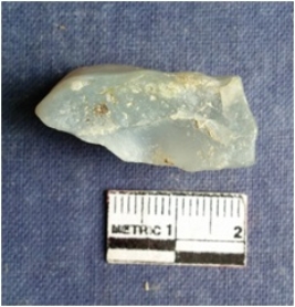 | Description / विवरण | The smoky quartz piece is oblong, with angular edges and flat sides. The piece is semi transparent with smoky dark layers within the piece. |