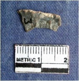 | Description / विवरण | The chert piece has a prominent bulb of percussion and sharp edges with pointed ends. |