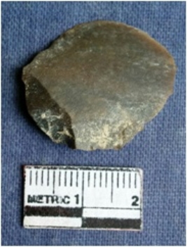 | Description / विवरण | The jasper flake is oval in shape with a prominent positive bulb of percussion and sharp edges. |