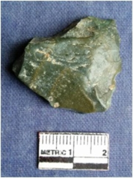 | Description / विवरण | The jasper piece has surfacial flake scars and thin sharp sides. |