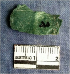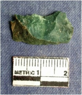 | Description / विवरण | The chert fragment has a sharp edges and surfacial flake scars on account of flaking. The piece is roughly flat at one end. |