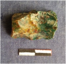 | Description / विवरण | The jasper piece has sharp edges and a bulb of percussion owing to flake detachement from the core. The sides as sharp and surface has numerous flake scars. |