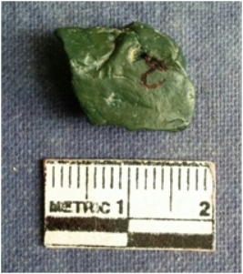 | Description / विवरण | The piece is roughly squarish in shape with rolled rounded edges. |