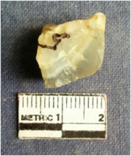 | Description / विवरण | Quartz piece is of a smoky variety. It is roughly block like with angular edges. |
